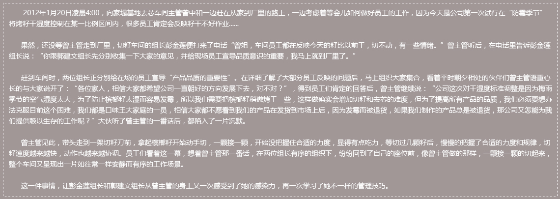領導干部用人格魅力贏得信任和尊重,是以德服人的體現,對于團隊內部正氣的培養,向心力、凝聚力的增強具有重要意義,同時對于員工人品性格的完善、自我道德修養的提升也具有示范效應,有利于形成公平、公正的工作氛圍,傳遞正能量,打造幸福口味王。